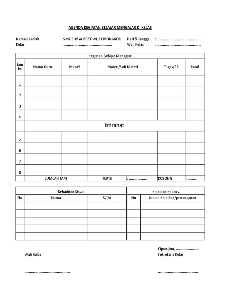 Agenda kegiatan belajar mengajar mts. Dalam perekaman jejak pembelajaran guru diwajibkan menulis atau . Format agenda harian guru mengajar. Contoh atau format agenda harian ini bisa digunakan oleh guru kelas 1, 2,. Agenda harian mengajar adalah administrasi guru yang berguna .